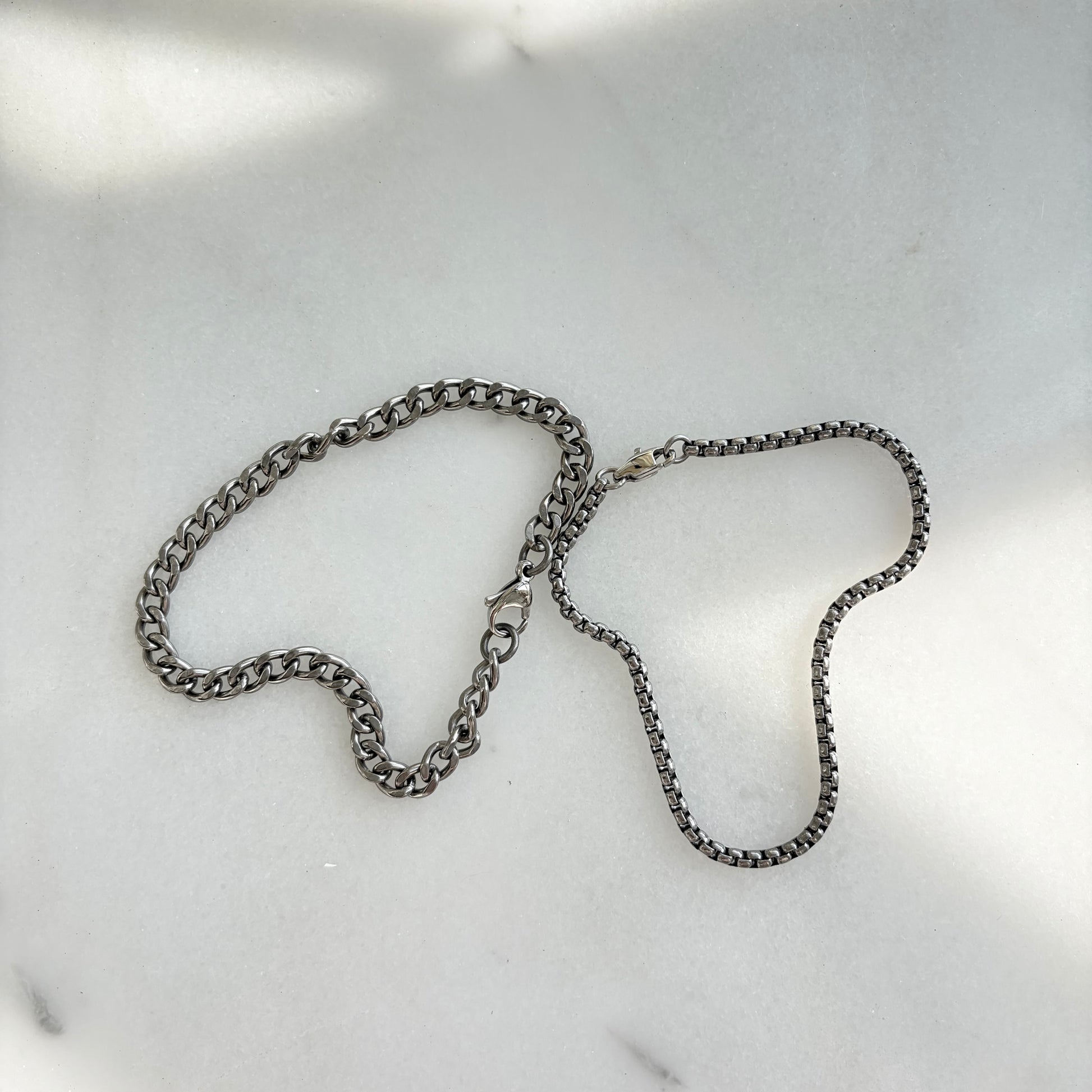 Including one cuban chain bracelet(5.5mm) and one round box chain bracelet(3mm).