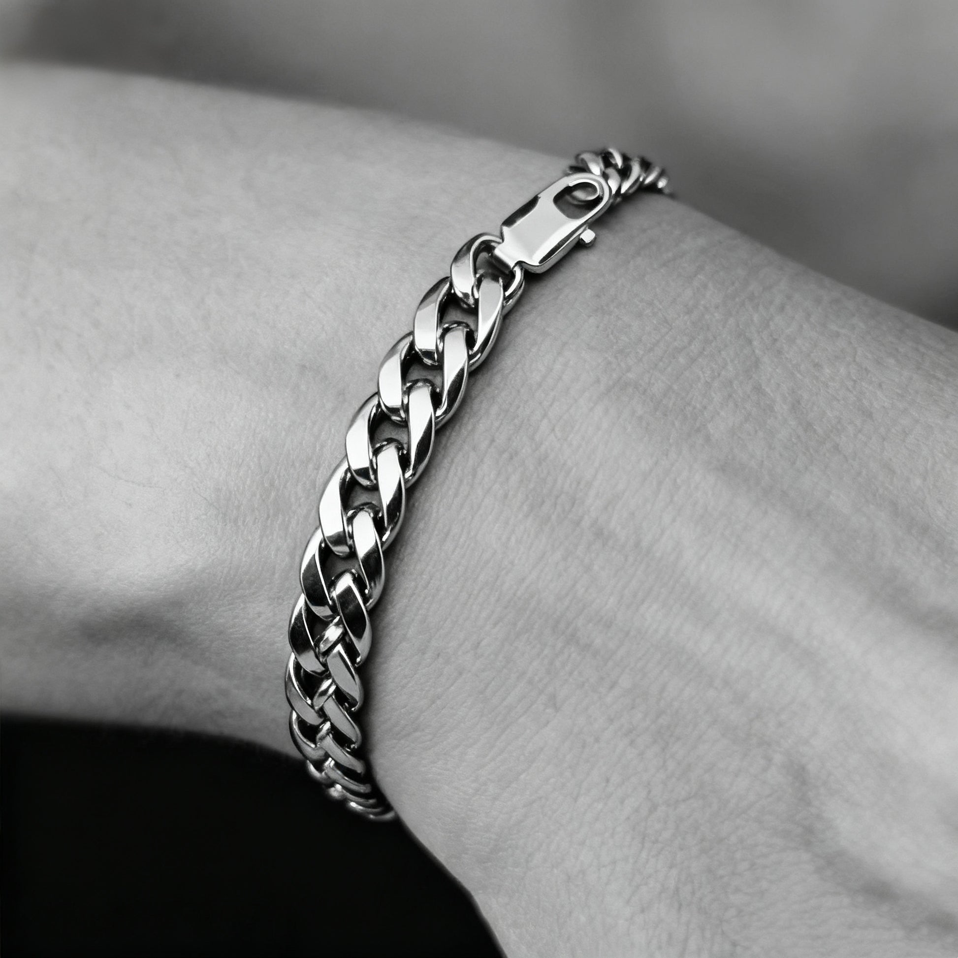 The Sterling Silver Cuban Chain Bracelet features 4mm 925 sterling silver links with architectural precision. Crafted for daily wear, this timeless piece combines modern minimalism with enduring quality.