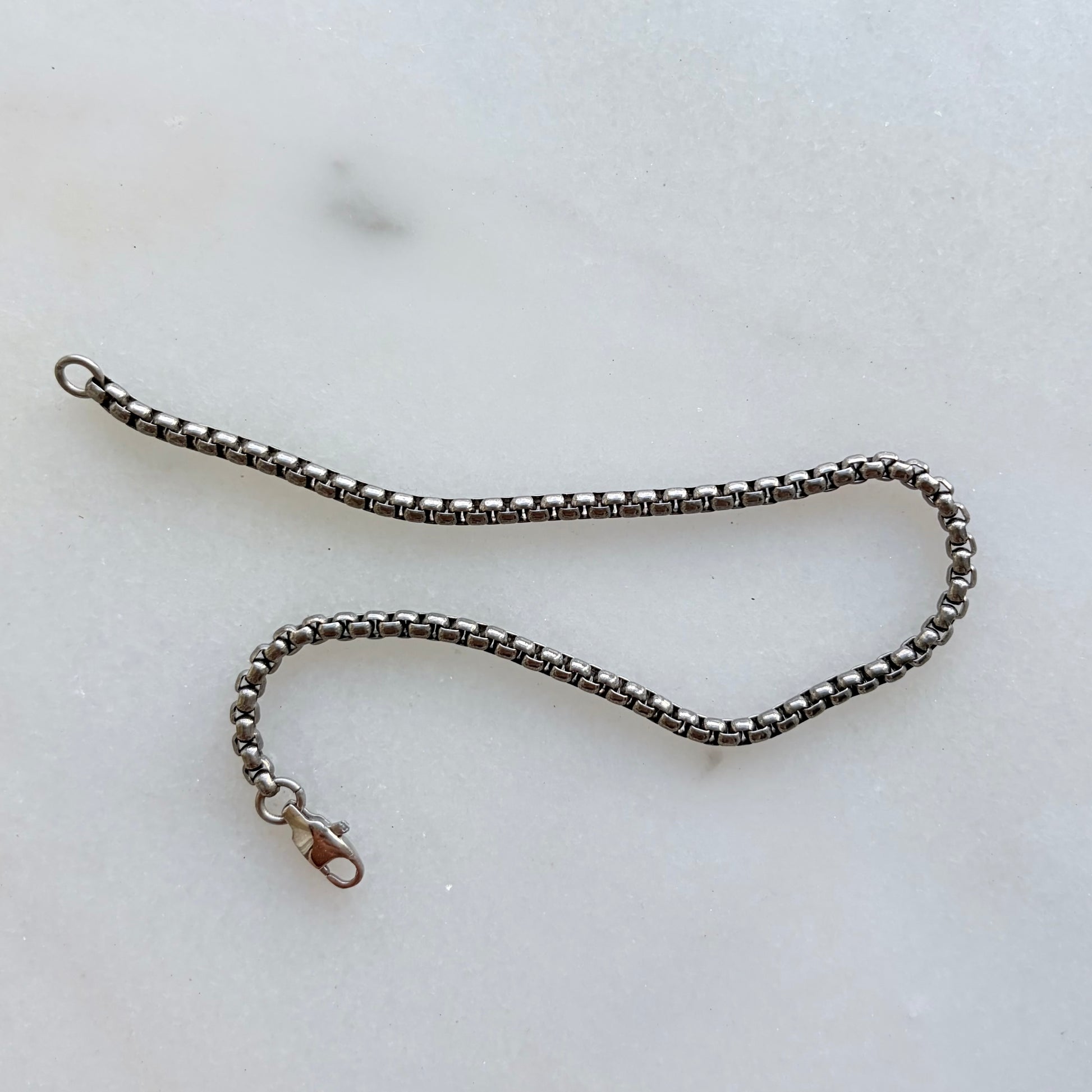 Precision meets versatility in this round box chain bracelet. Crafted from premium titanium, it delivers the perfect weight and presence on your wrist without compromise. Wear it solo for understated elegance, or stack it with your favorite pieces to build your signature look.